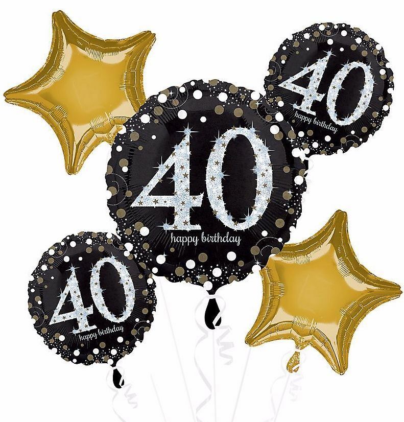 40th Birthday Balloon Bouquet 5pc - Sparkling Celebration