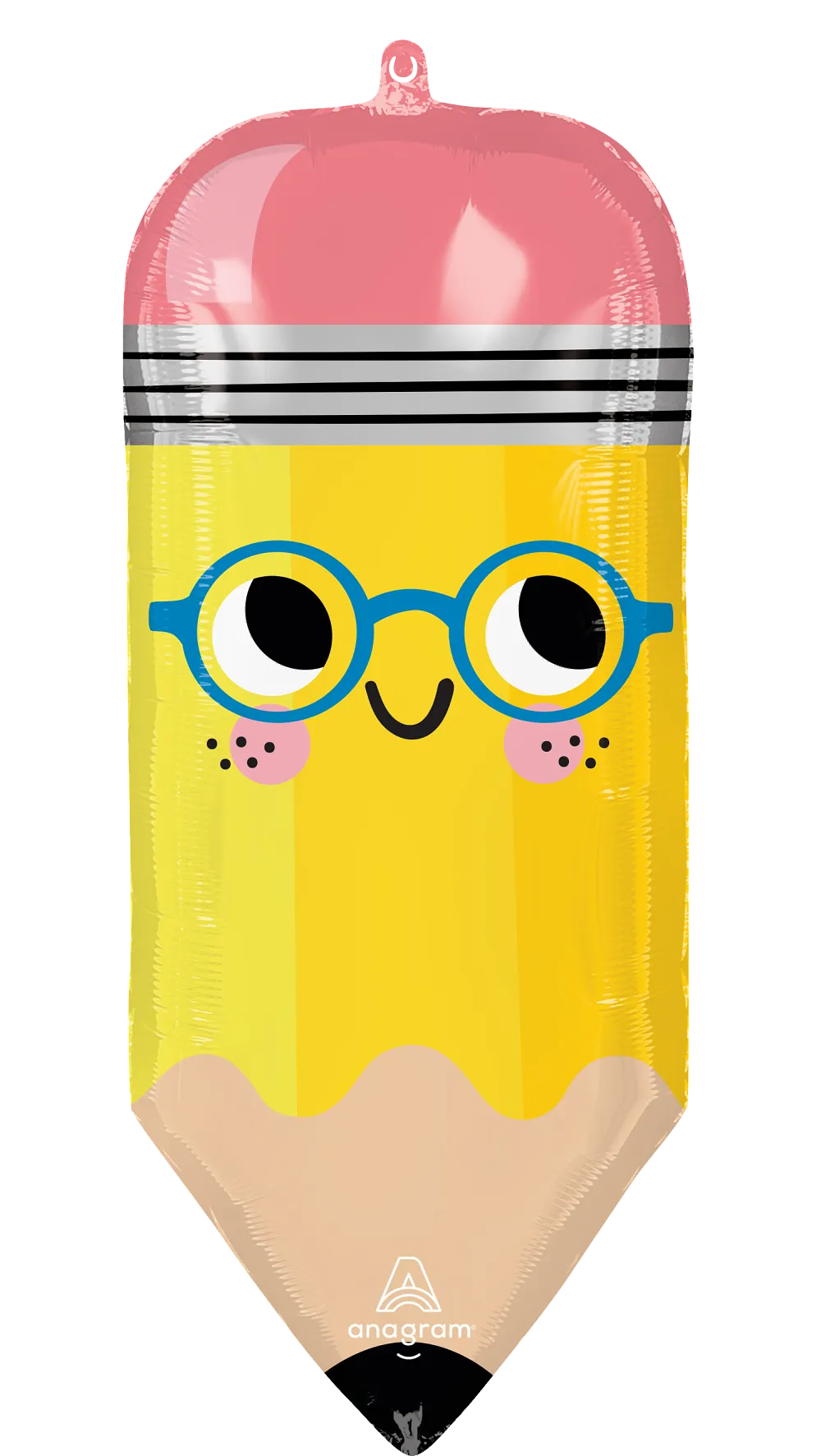 Accent your Back to School themed party with this 31 inch large unique shaped Write On Pencil foil mylar balloon. The perfect balloon for your Back to School party, this 31 inch Anagram party balloon is great for setting the scene! This balloon includes a self-sealing valve, preventing the gas from escaping after it's inflated. The balloon can be inflated with helium to float or with a balloon air inflator. Size: 32 inches