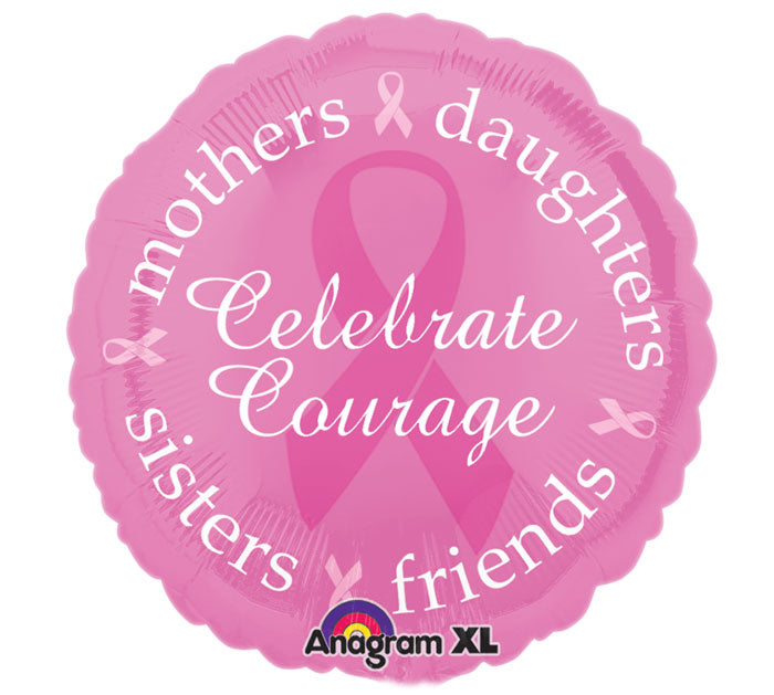Fight for a cure with our Breast Cancer Awareness Balloon! This round pink balloon features breast cancer awareness ribbons and reads "Celebrate Courage" encircled in text that reads "Mothers Daughters Sisters Friends." Decorate for your event during Breast Cancer Awareness Month with this sweet balloon!