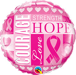Fight for a cure with our Breast Cancer Inspiration Balloon! This round pink and hot pink balloon features breast cancer awareness ribbon and reads "Courage, Strength, Hope, and Love". Decorate for your event during Breast Cancer Awareness Month with this sweet balloon!