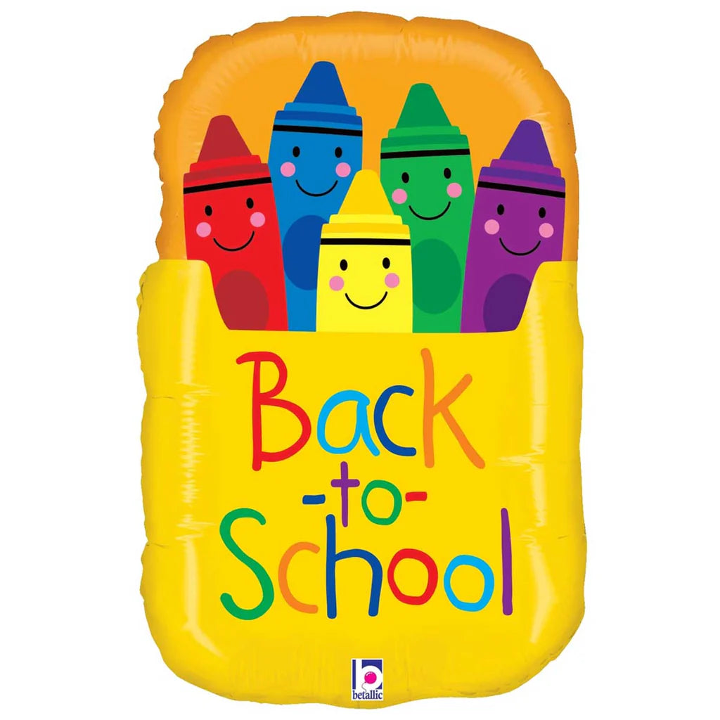 Accent your back-to-school themed party with this 27 inch Smiling Crayon Box foil balloon by LA Balloons®. Featuring a cheerful box of colorful crayons with a smiling face, this fun-shaped balloon adds a playful and welcoming vibe to any school celebration. With a self-sealing valve and helium or air inflation capability, it's the perfect addition to classroom décor and student events.