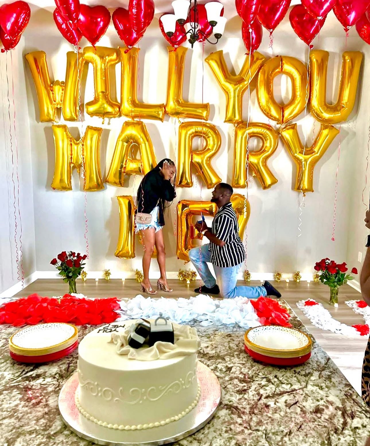 This package includes everything you need to make your marriage proposal truly unforgettable. Our expertly curated selection includes 3 dozen 18-inch red Mylar hearts, 15 gold Mylar letters spelling out "Will You Marry Me?", 2 dozen red roses, and a bottle of Moscato. Plus, our complimentary on-site setup service ensures that everything is perfect for your special moment. Please note that this package does not include rose petals, cake, or plates.