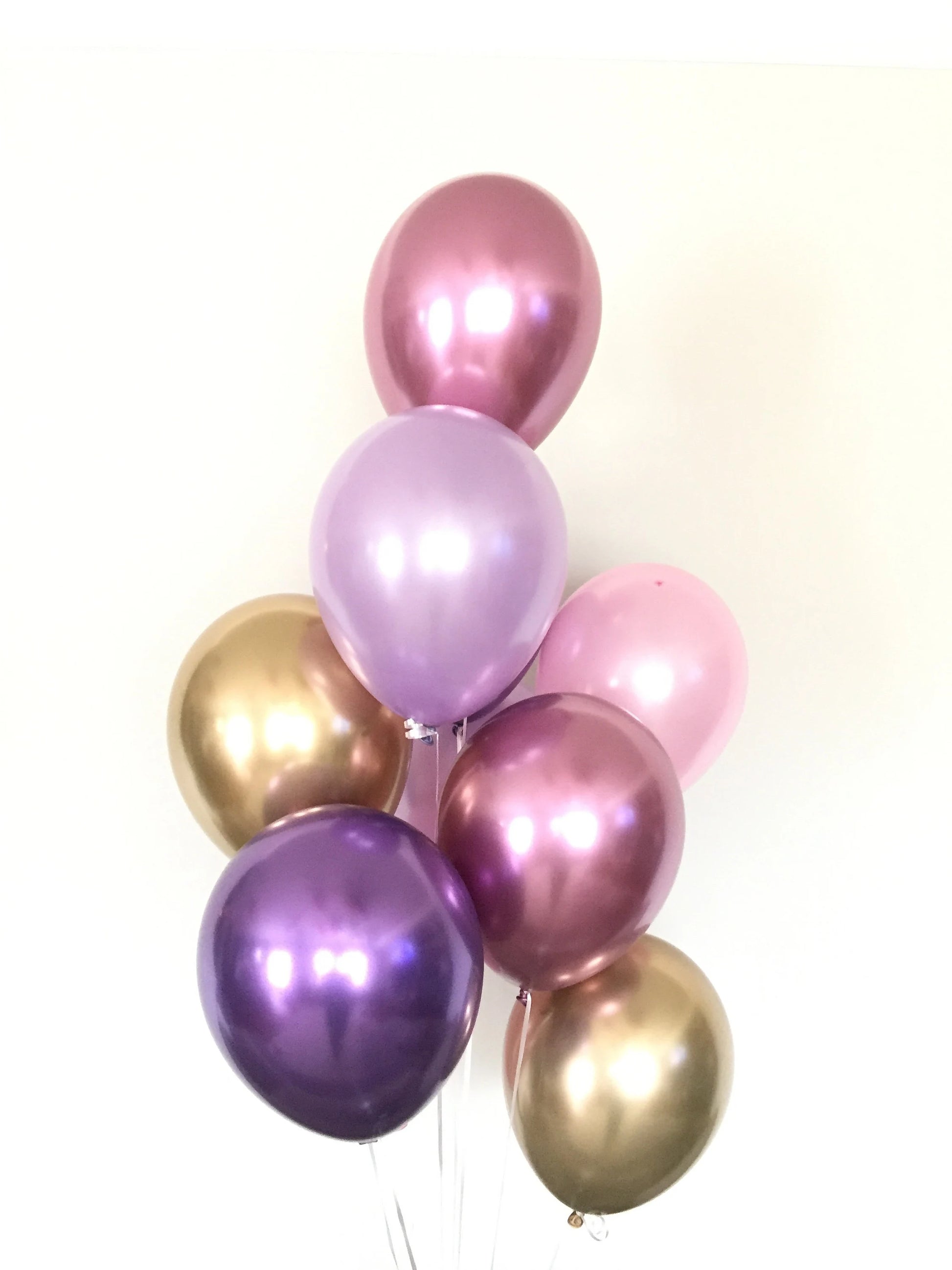 This gorgeous mix of balloons in different finishes is so sparkly and fun! A confetti pattern is printed onto the clear balloons for a stress-free "stuck to the sides" look.