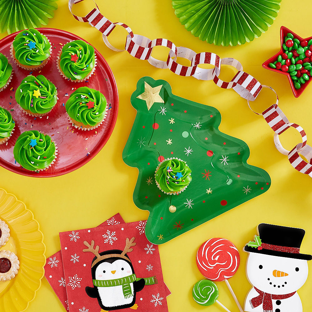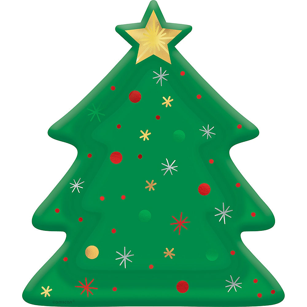 Serve up a plateful of holiday spirit with Shaped Christmas Tree Dinner Plates! These large paper plates are shaped like a Christmas tree with gold, red, and silver details. Keep a stack of Christmas tree plates on your buffet table for guests to pile on a delicious meal and continue celebrating the holidays!