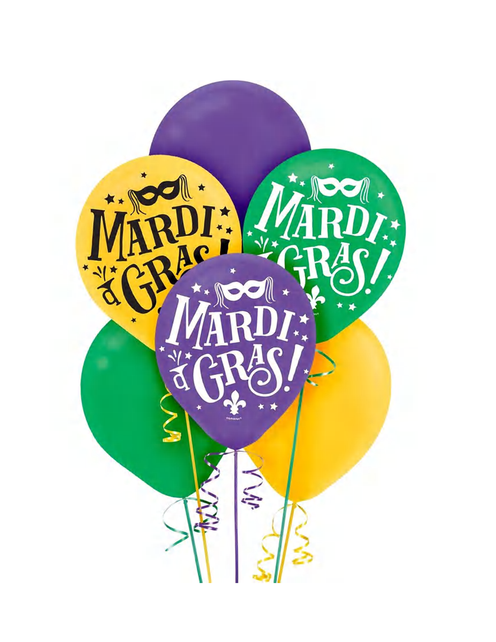 12 in. Mardi Gras Green, Purple and Gold Latex Balloons (15-Count)