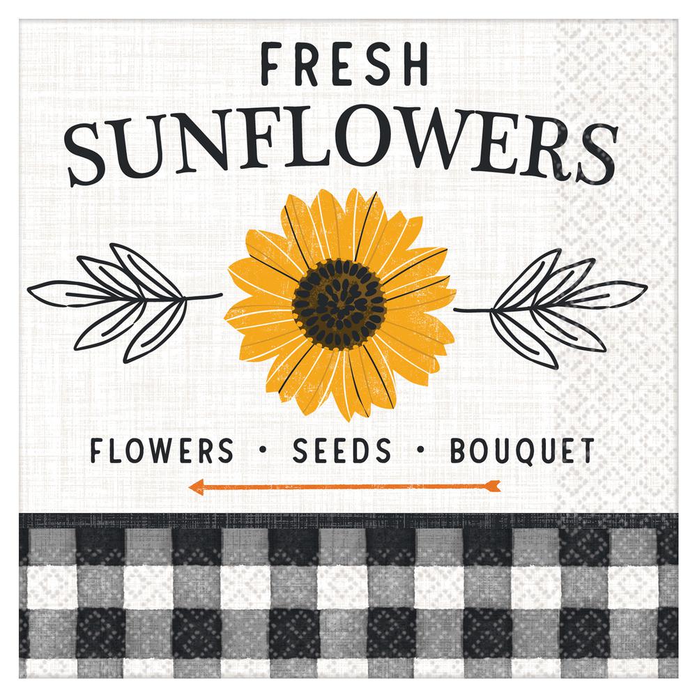 Enjoy a fall picnic with our Harvest Market Beverage Napkins. Each napkin features a black and white checkered border, sunflowers and Fresh Sunflowers message. Use these napkins to clean up spills.