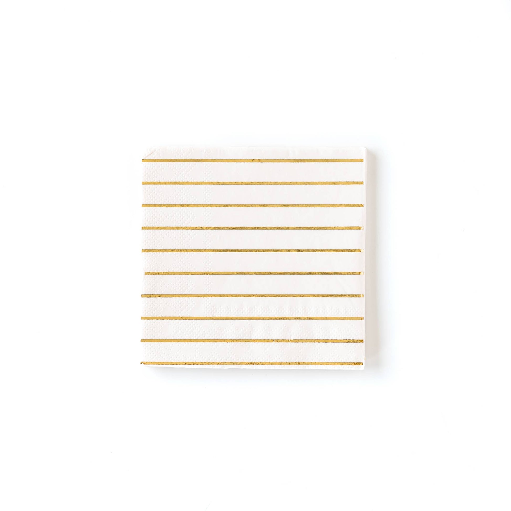 Cream Cocktail Napkins with Gold Striped Accents 5" x 5" Folded Size 25 Napkins per Pack Gold Foil Accents Do Not Microwave