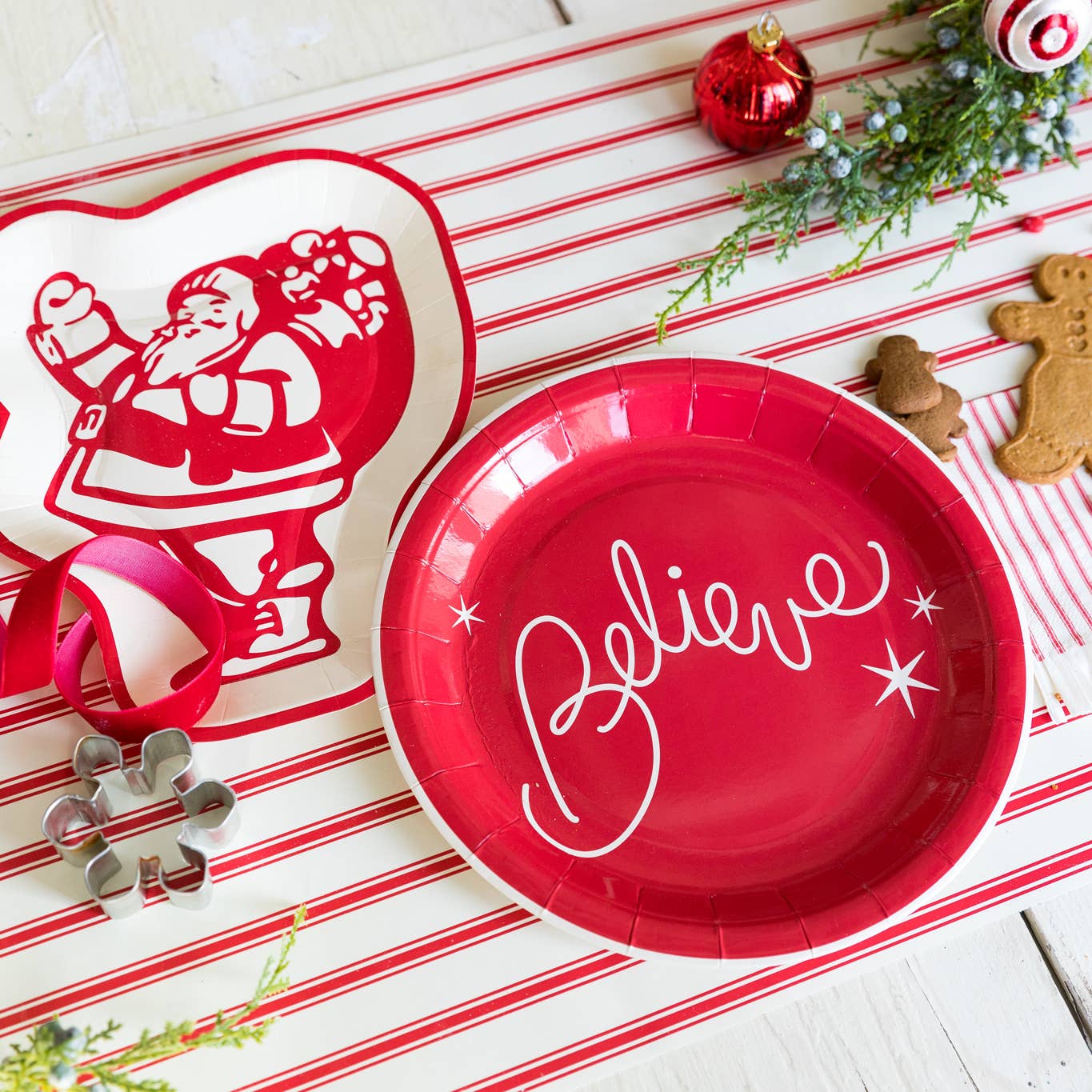 It's the Ho Ho Holidays, and Santa is coming to town. Get all your holiday goodies ready by plating them on these believe plates. Set a festive holiday table for Christmas dinner with these red and cream party plates. Add our Santa plates and fringed napkins to create a merry table setting. • 9" Circle Paper Plates • 8 Plates per Package