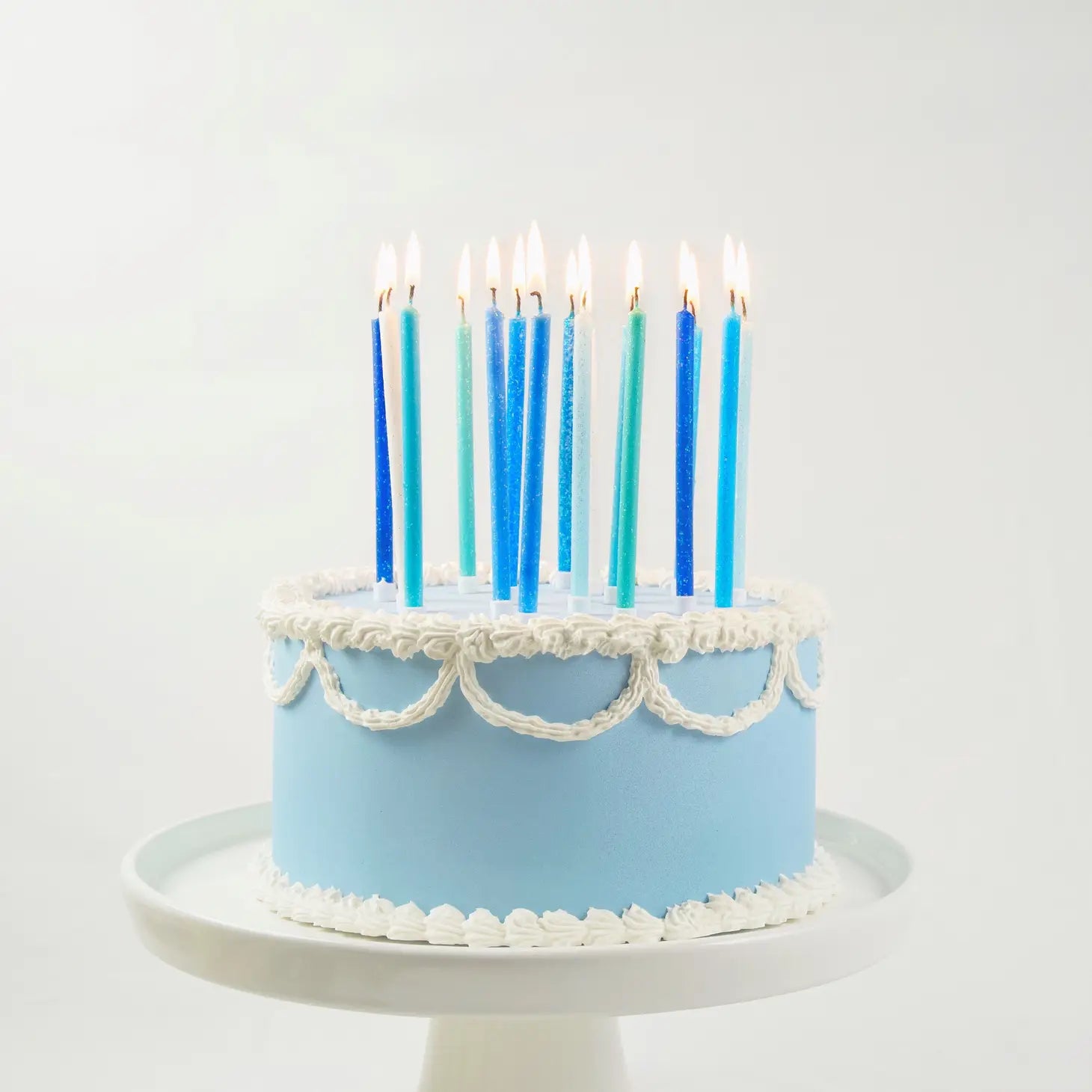 Dress up your birthday treat in seconds with these Blue Gradient Birthday Candles. Featuring a glitter design, these classic cake candles are ready to light up your next birthday party. Use this pack of 16 candles to put the finishing touch on any birthday treat. They look great alone but can be easily paired with other colored candles and cake decorations to really customize your confection. Celebrate and save with more from our selection of blue party supplies and decorations.