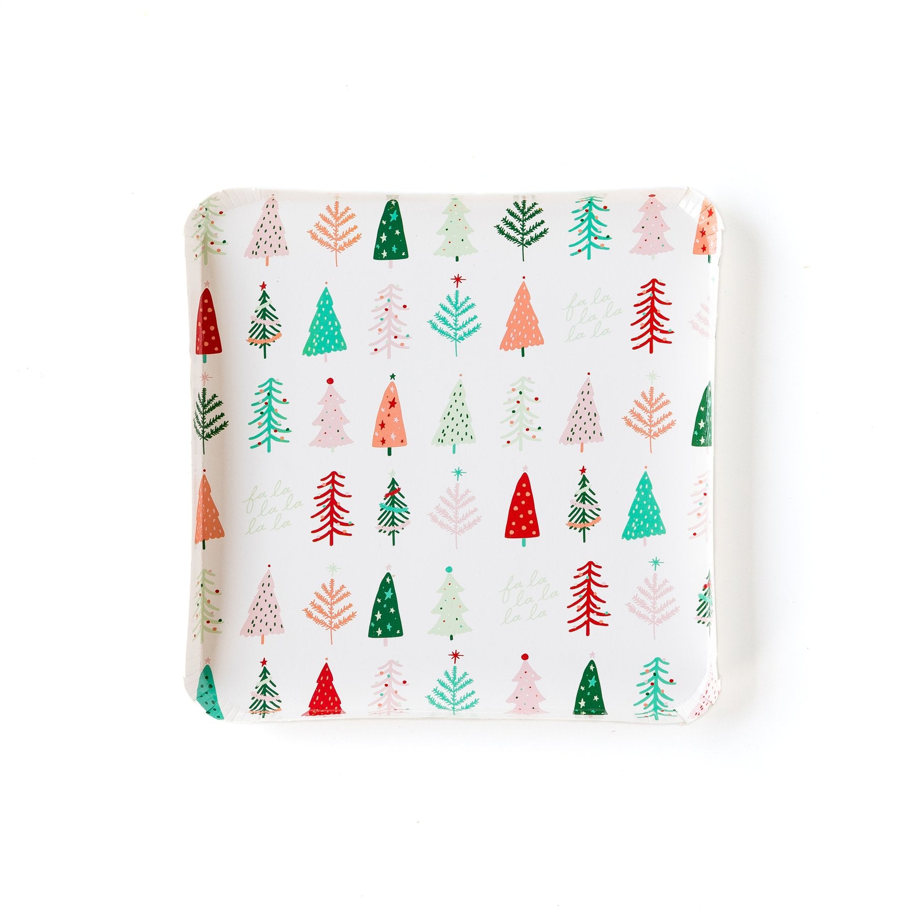 Keep your holiday tablescape festive with these festive tree plates! As a part of our holiday collaboration with Oui Party, these 9" plates will creative a merry place setting for your guests, and will brighten your day with easy cleanup. The whimsical tree pattern will bring holiday magic to any gathering that you are planning this Christmas season. Pair this plate with our shaped tree plate and Christmas dinner napkin for the perfect holiday tablescape.