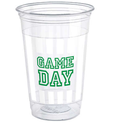 Tackle your next weekend gathering with friends and family in style with these Game Day Football Plastic Cups. They're just what you need to serve the fans at your college, pro party or other sports-themed events. Arrange all of your Game Day cups around a table before the festivities start or stack them up next to the punch bowl. Use them to hold any cold beverage that you want. They're very simple to dispose of when everything is over to save you from doing any dishes. These 16 oz plastic cups pair nicely with other themed Game Day Football party accessories like plates, napkins and banners. They also come in a pack of eight.
