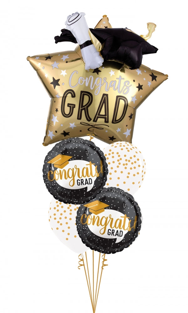 Gold Congrats Grad Balloon Bouquet 6pc includes: