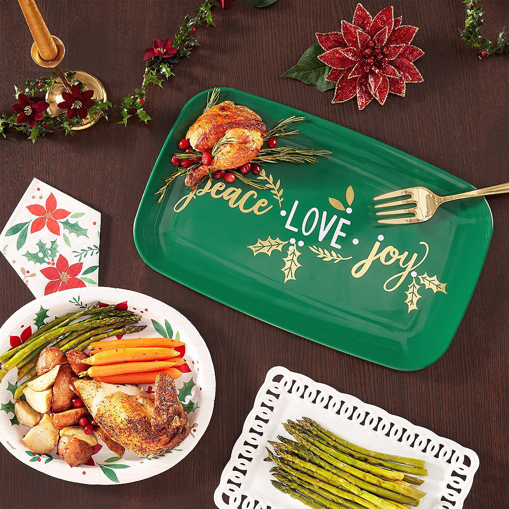 Metallic Peace, Love, Joy Plastic Rectangular Platter