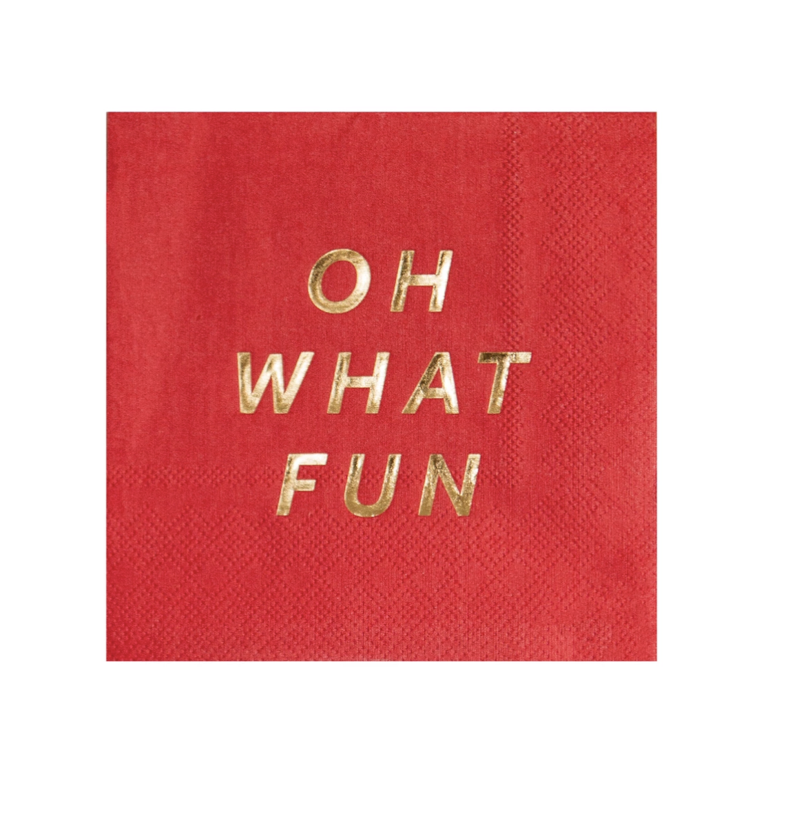 Classic with a twist! Put those boring party napkins aside and serve your guests with our cool 'Oh What Fun' beverage napkins. Traditional yet vibrant, these napkins will easily take center stage at your holiday party!