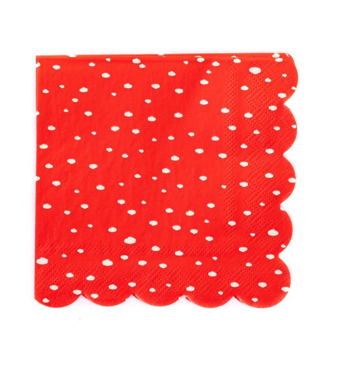 Sometimes holiday fun can get a little messy. Clean up those little party mishaps with holiday flair using these scalloped cocktail napkins. A traditional red and white color scheme make these napkins perfect for any holiday gathering. From Christmas cookie exchanges to holiday cocktail parties these scalloped napkins help set a merry and festive mood.