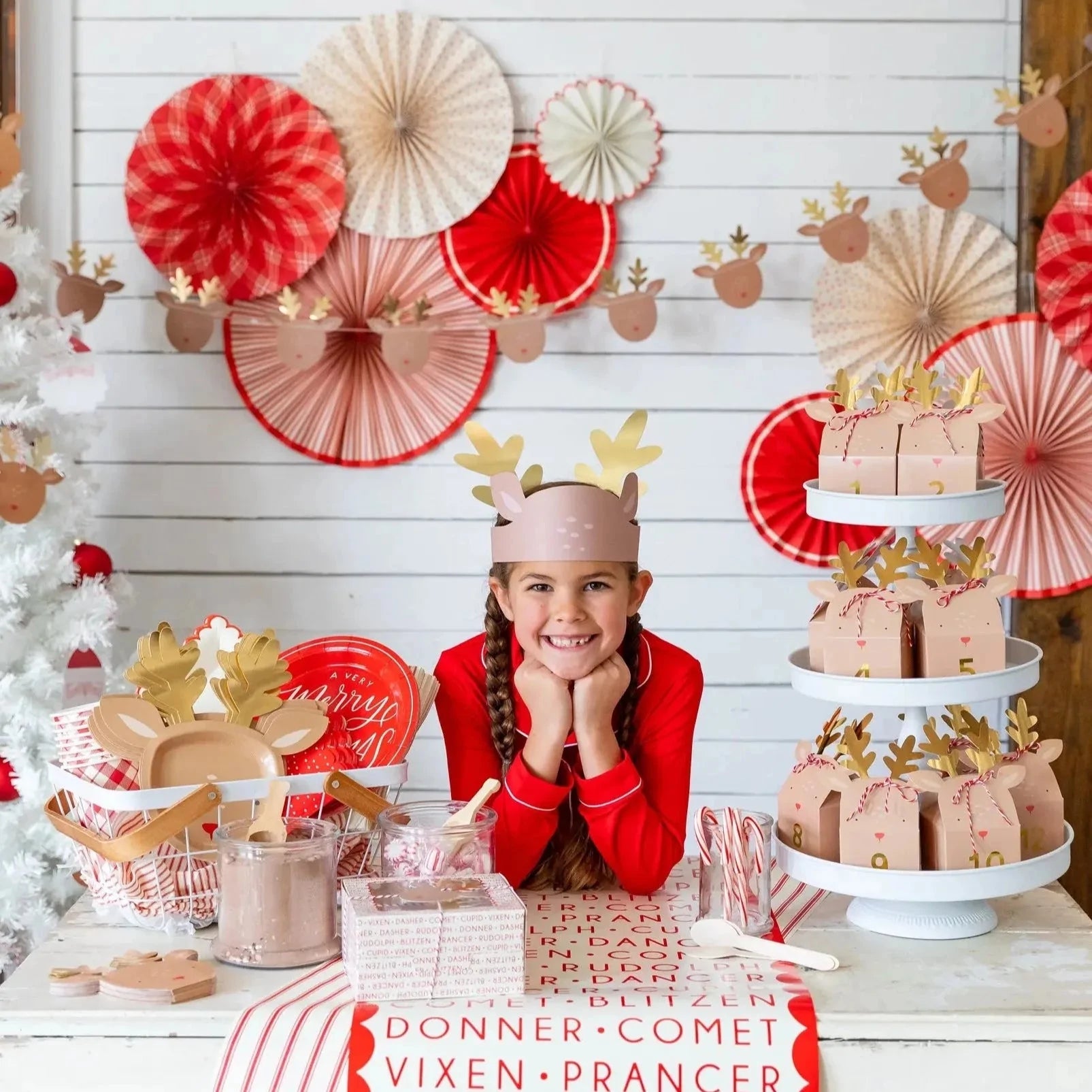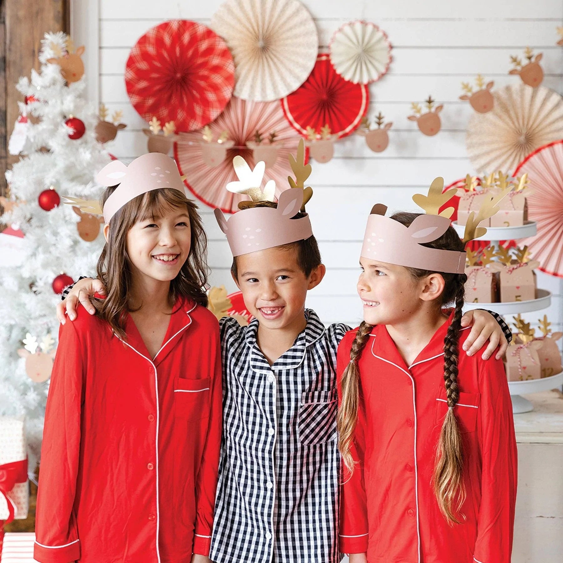 Make sure your guests are ready for reindeer games with these whimsical Rudolph Reindeer Hats! With gold foil details and an adjustable design, they're the perfect Christmas accessory for kids (and adults) of all ages!