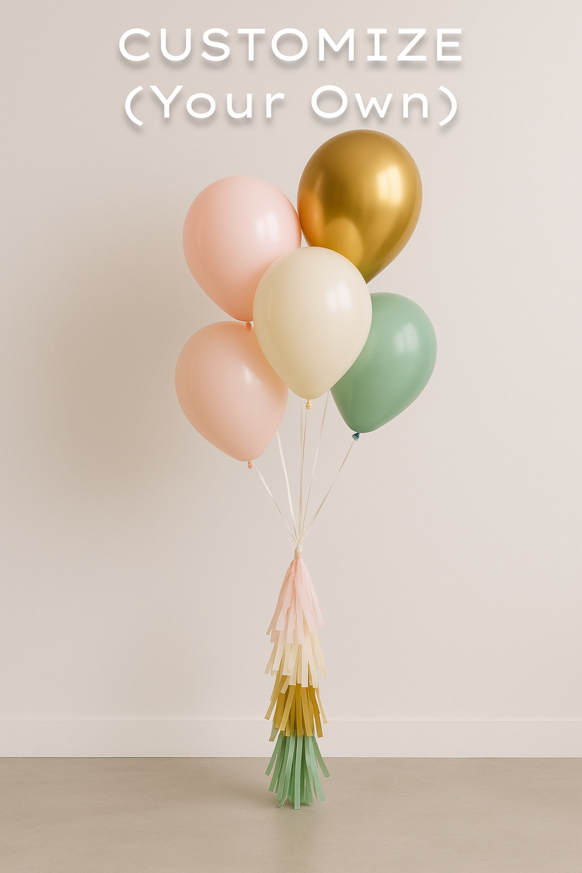 Shown here is our Classic Helium Tassell Balloon Bouquet, available with or without a tassel tail for a stylish touch.